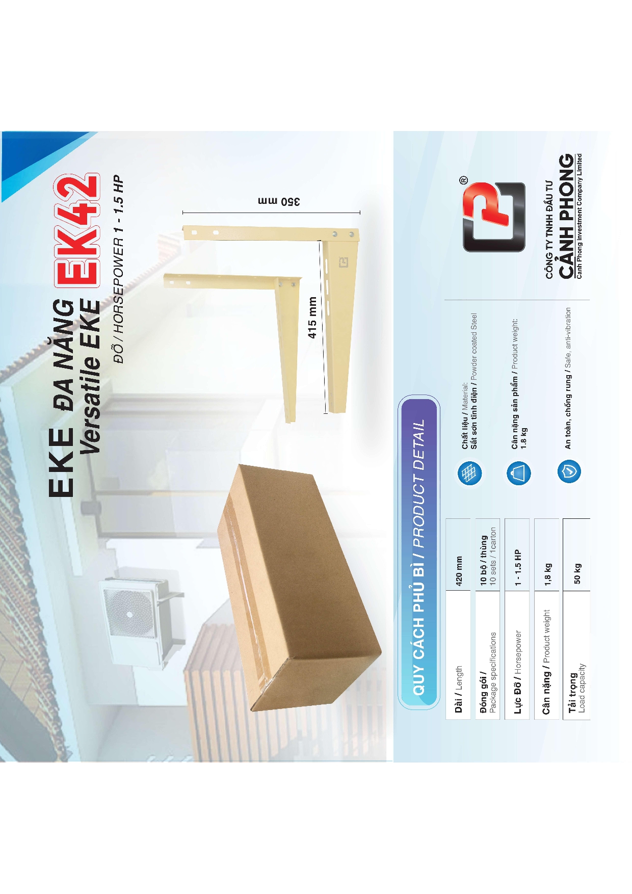 | Sử dụng cho | Đỡ cục nóng máy lạnh từ 1HP - 1.5 HP |
