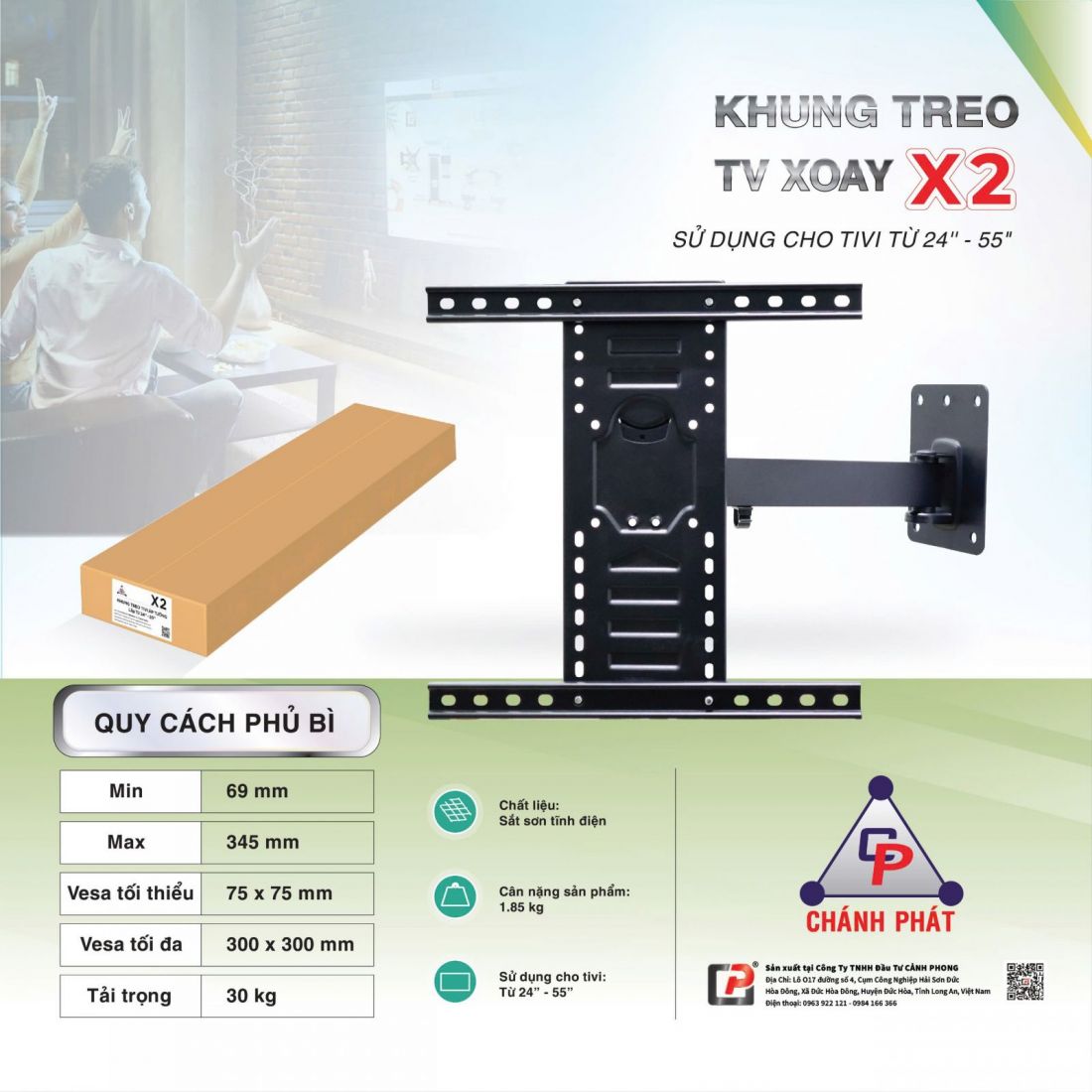 Khung treo tivi đa năng Cảnh Phong từ 24-55 inch X2 là một loại giá treo tivi thiết kế dành cho các màn hình TV kích thước từ 24 đến 55 inch.