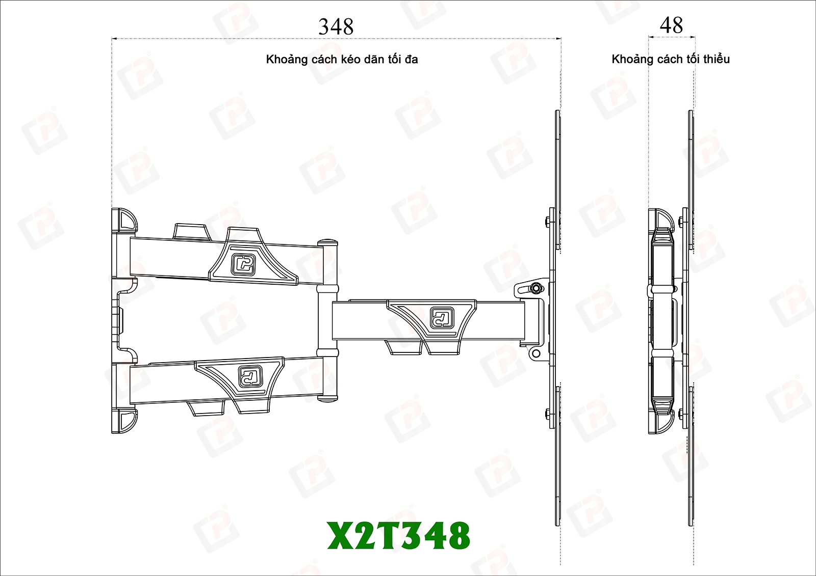 - Khoảng cách kéo dãn tối đa: 348mm